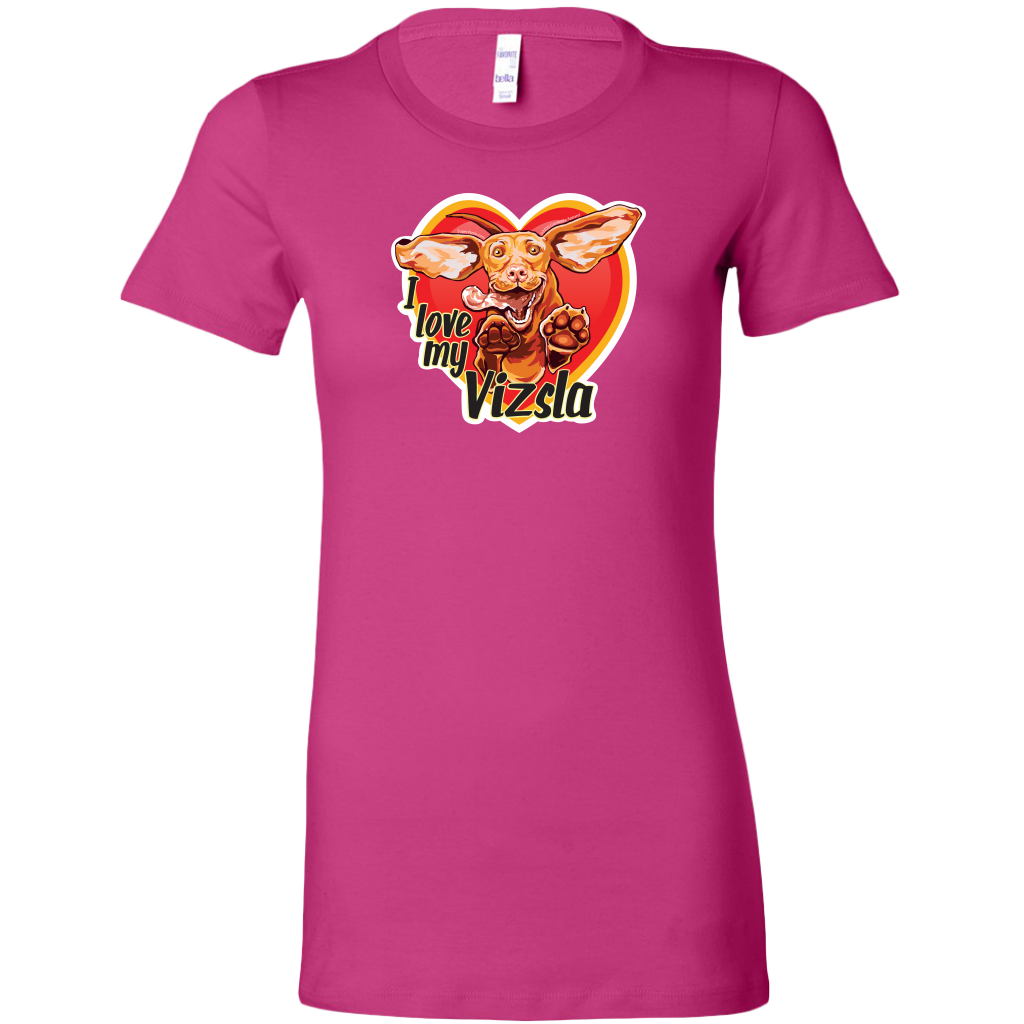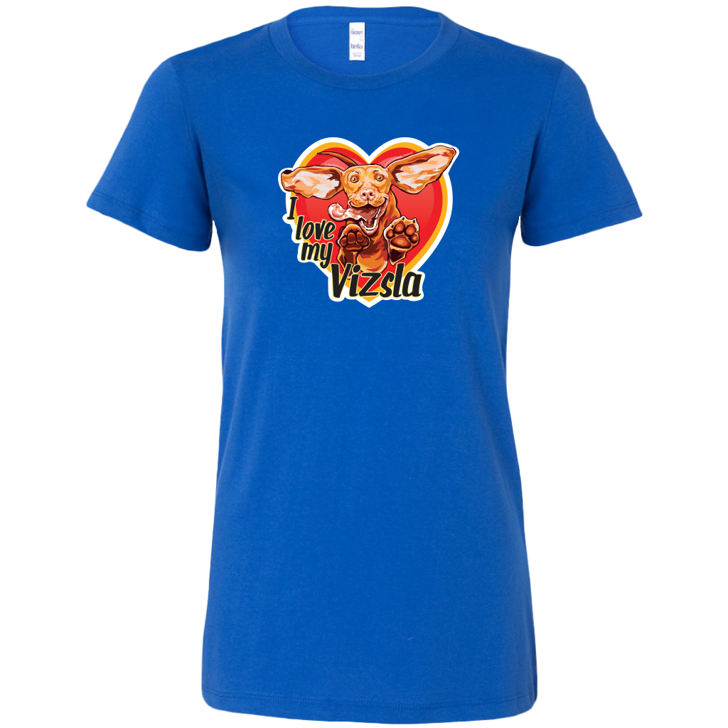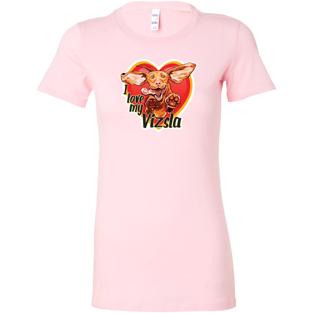 Bella Womens ShirtFeatures feminine fit, crew neck, and short sleeves featuring the "I love my Vizsla" dog design on the front.