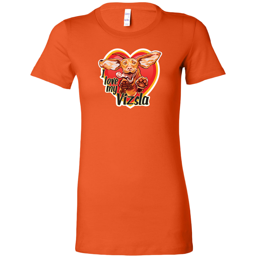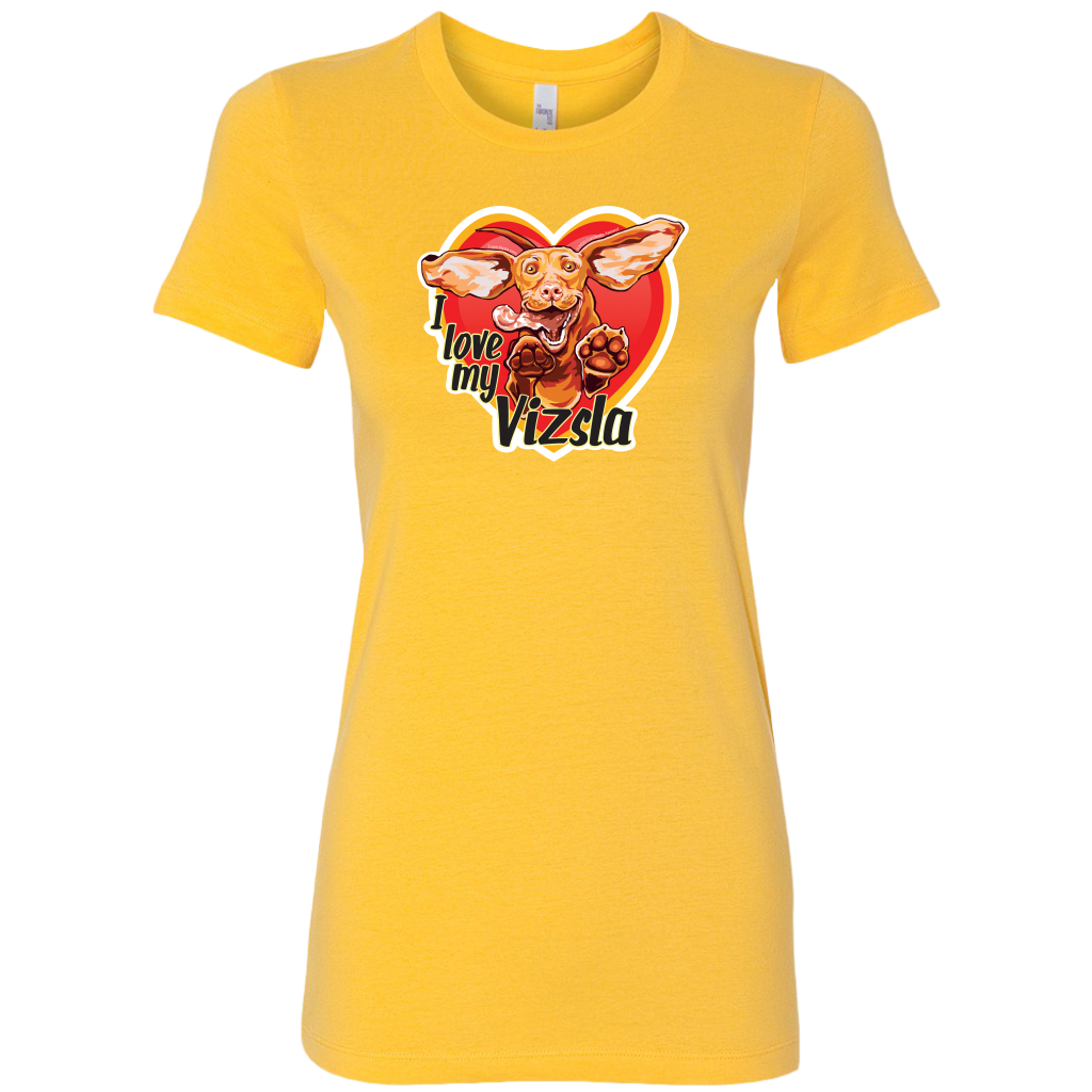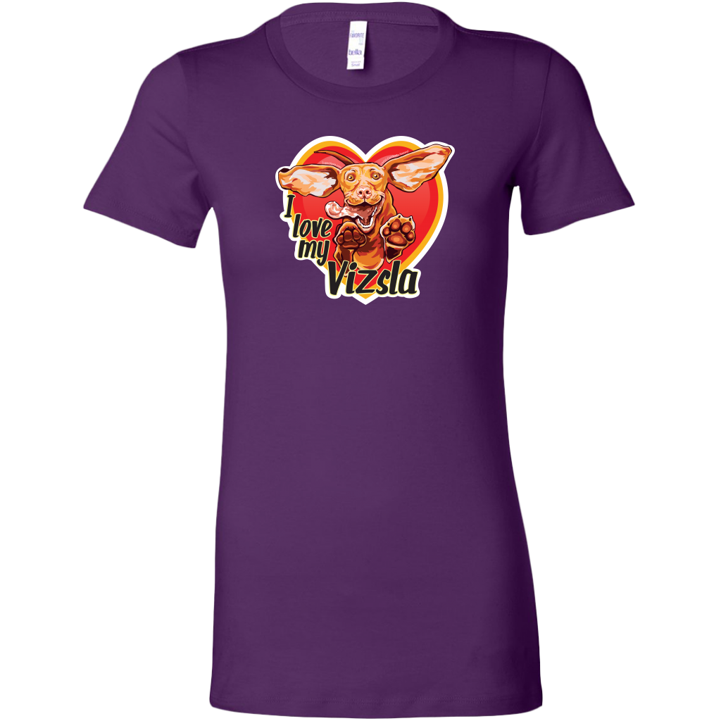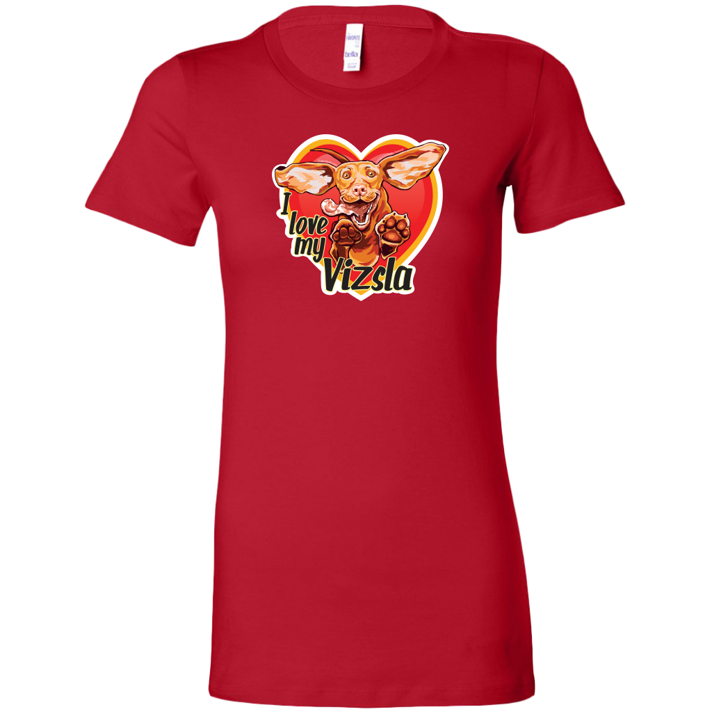 Bella Womens ShirtFeatures feminine fit, crew neck, and short sleeves featuring the "I love my Vizsla" dog design on the front.
