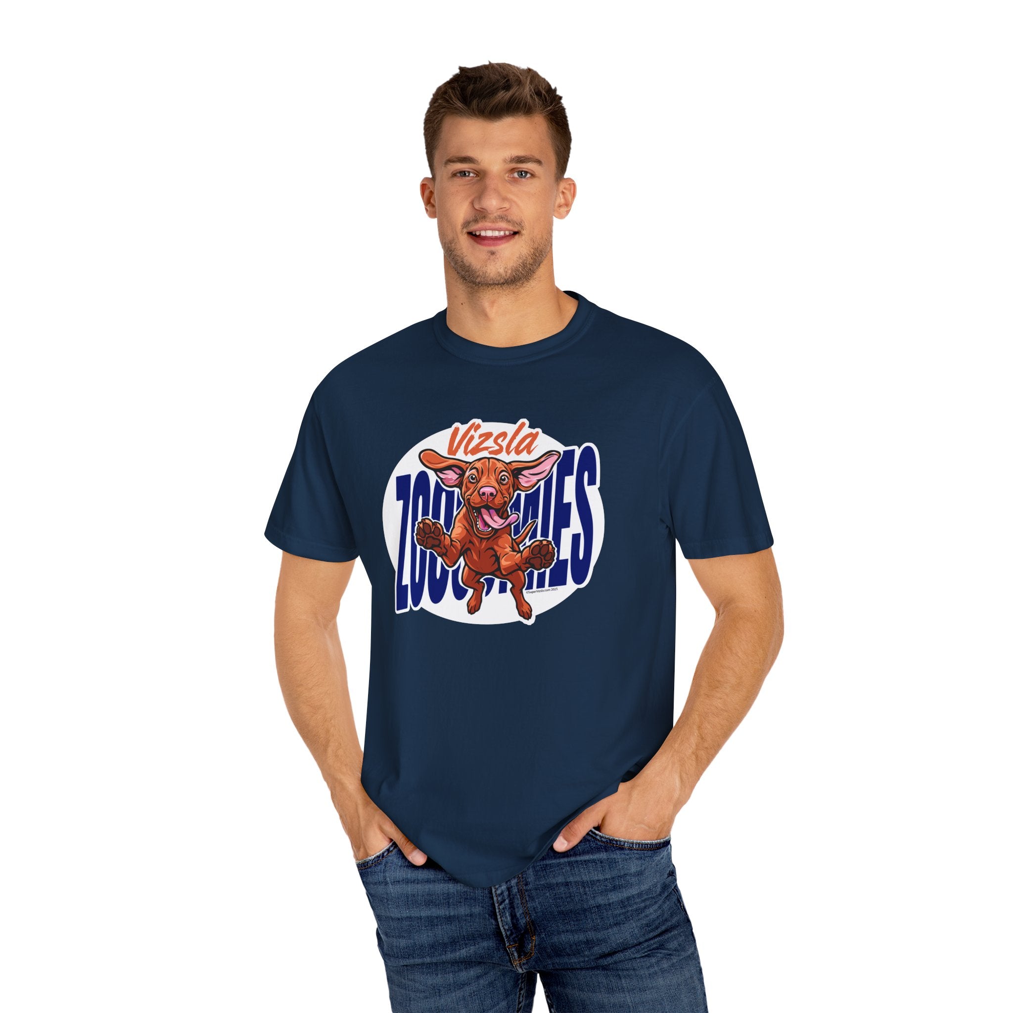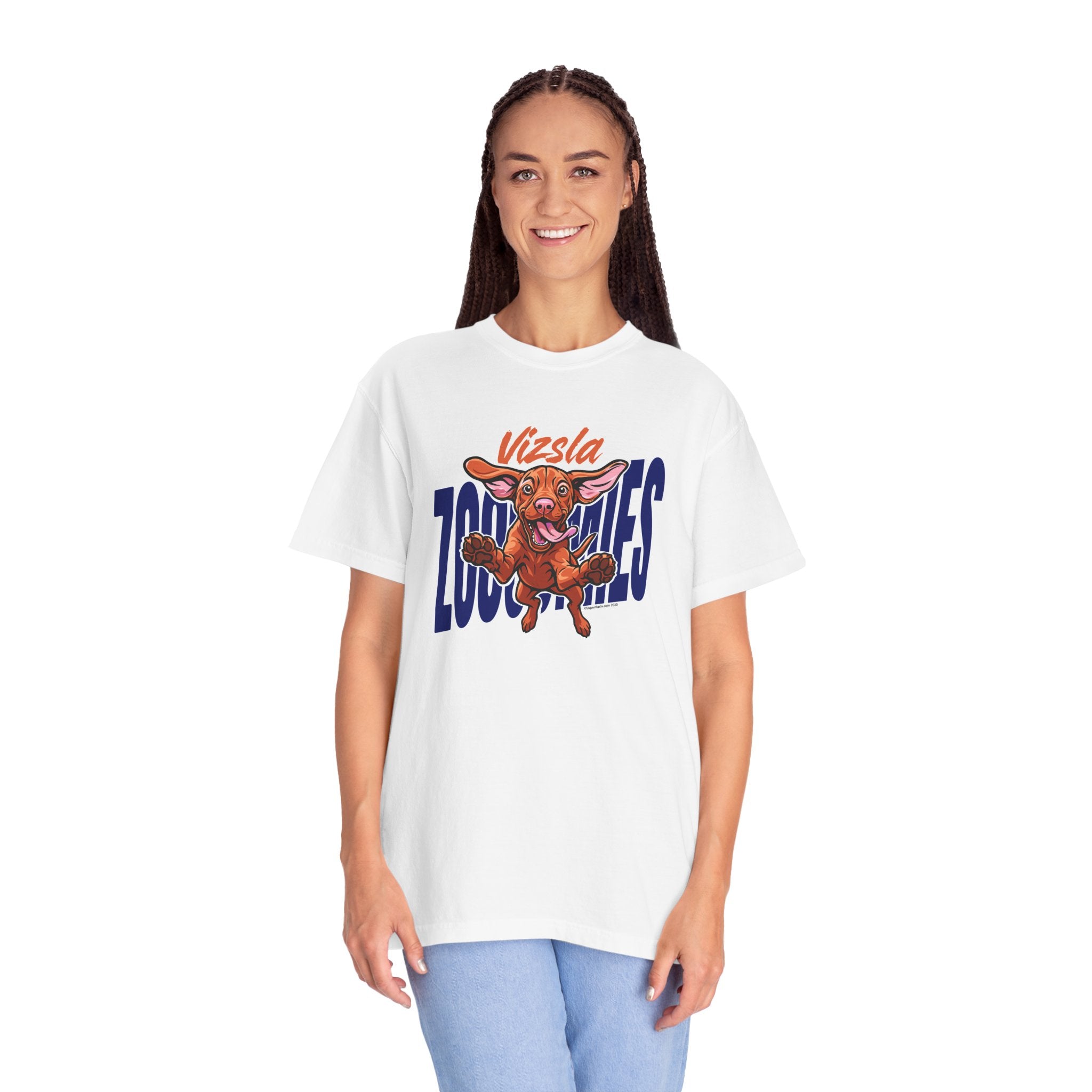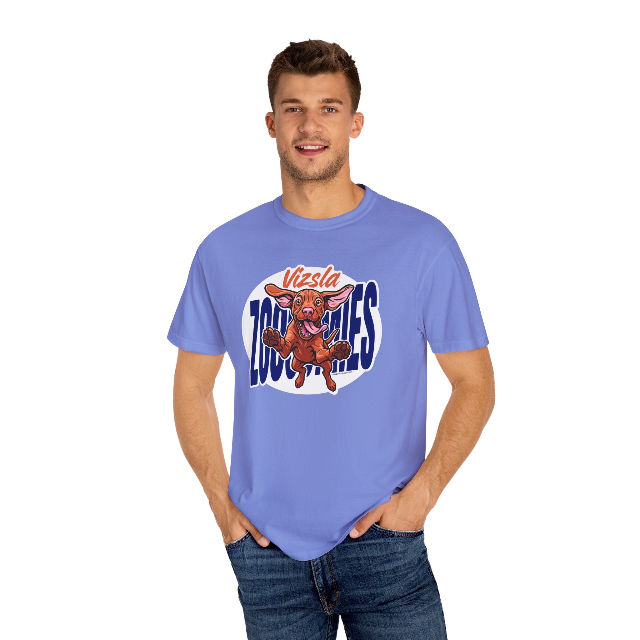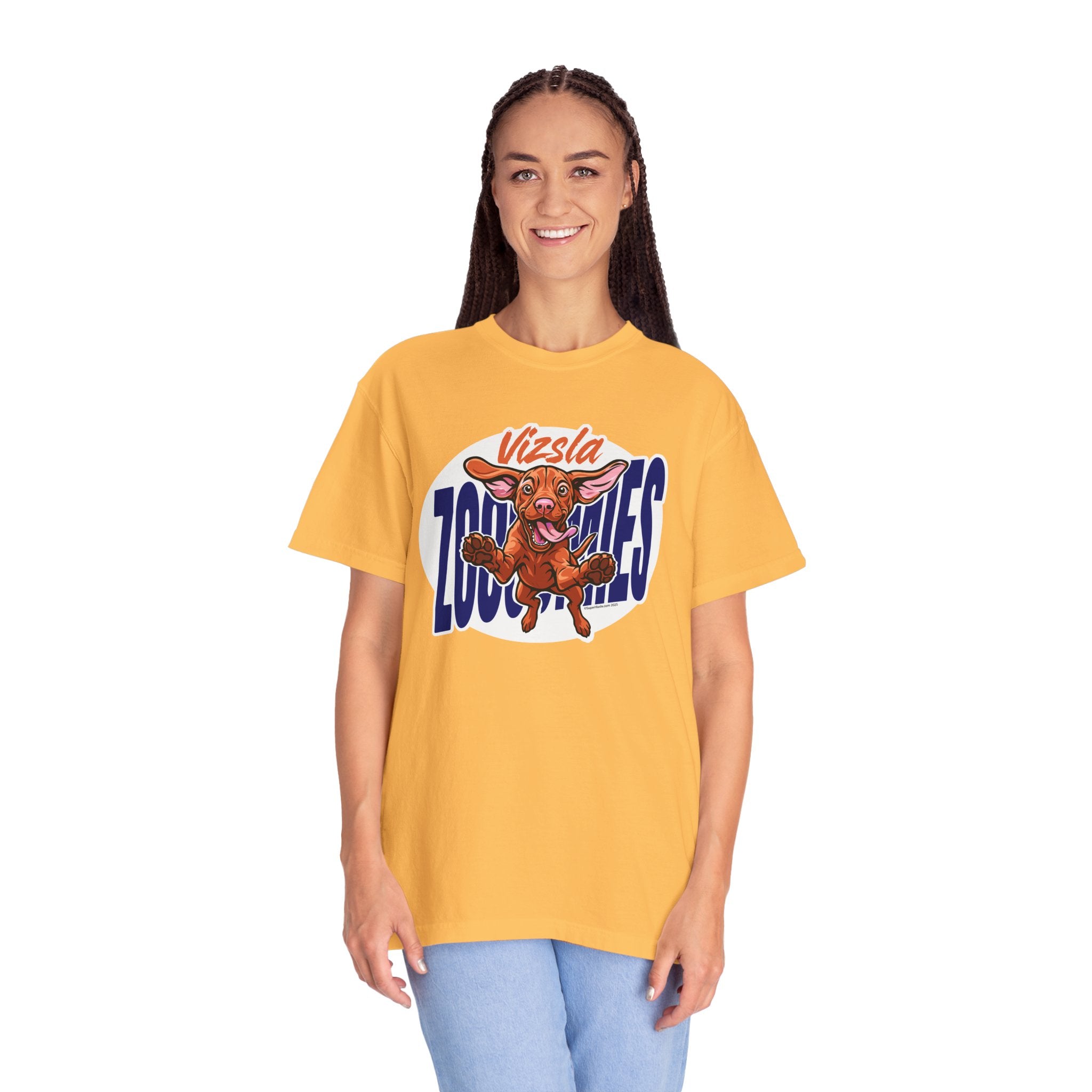 Find your perfect blend of comfort and style with this unisex garment-dyed T-shirt. Crafted with soft, 100% ring-spun US cotton, this tee offers a relaxed fit that feels great against the skin, making it ideal for everyday wear. With its vibrant colors and eye-catching Vizsla Zoomies design, this T-shirt brings a fun and playful vibe to your wardrobe. Perfect for pet lovers, especially Vizsla enthusiasts, it makes a thoughtful gift for friends and family during holidays like birthdays or special celebrations. Wear it during casual outings, trips to the park, or cozy days at home, and enjoy the compliments that will come your way!