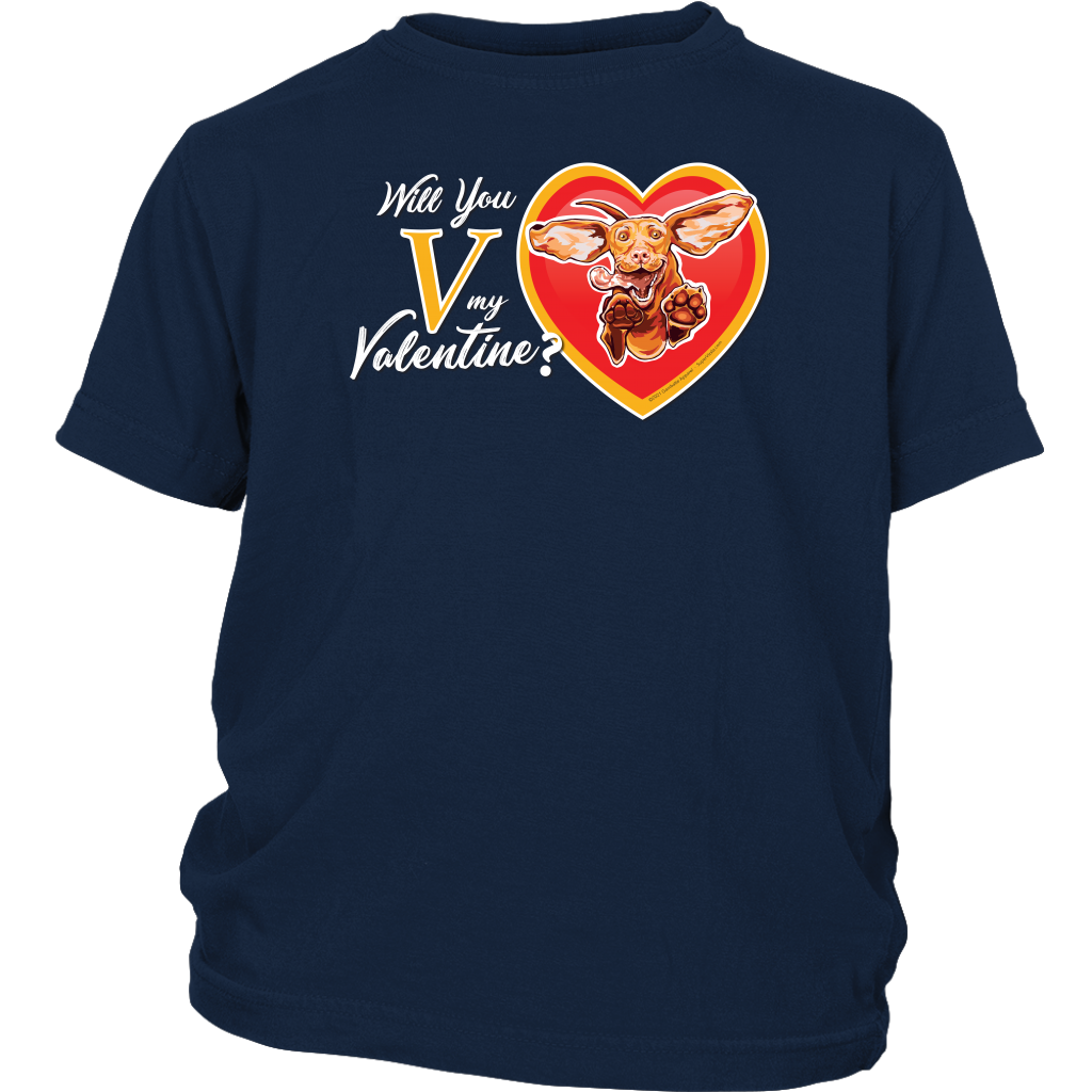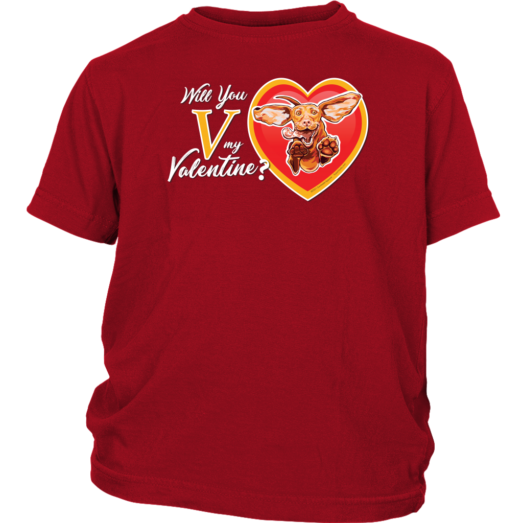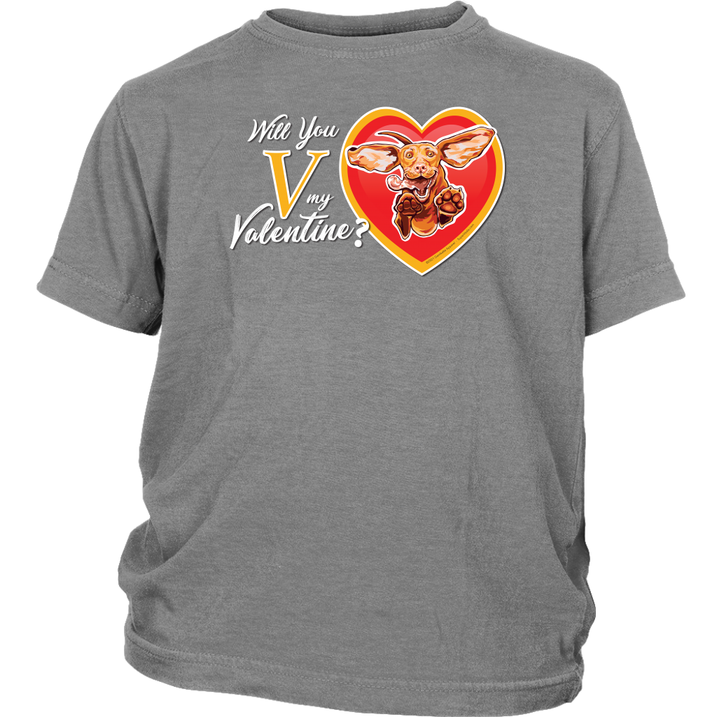 District Youth Shirt featuring the "Will You V My Valentine?" design by Super Vizsla